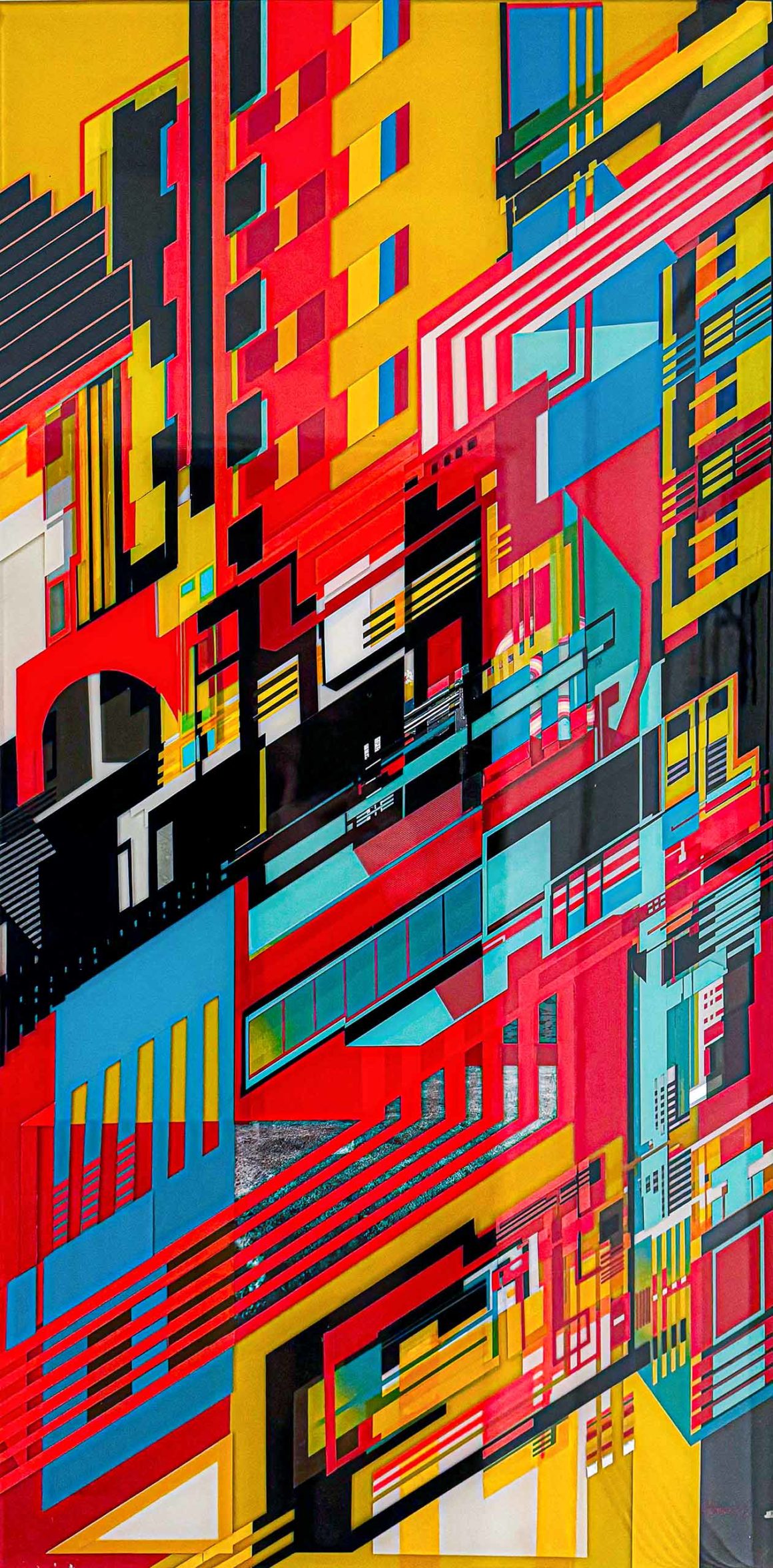 Tape, Lack und Epoxidharz auf Acryl 90 x 40 cm