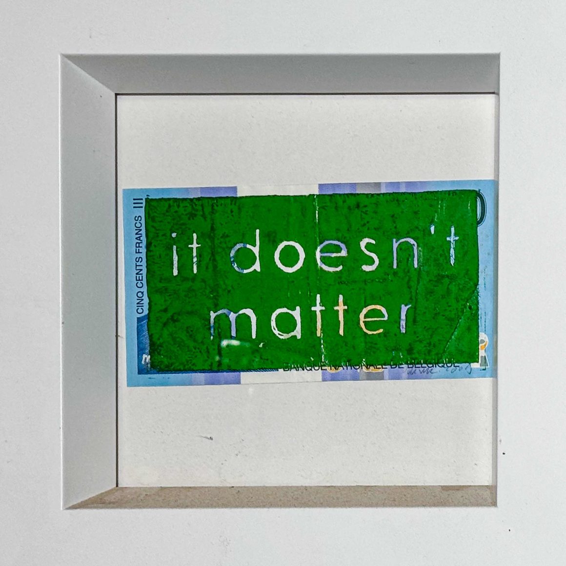 Linolschnitt auf altem französischen Geldschein 7 x 20 cm