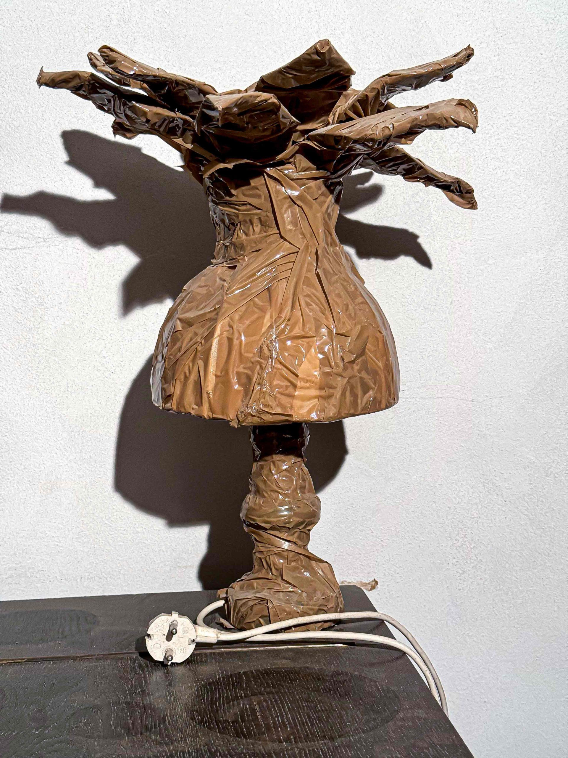 Braunes Klebeband / Tape auf Komposition Wand- und Nachttischlampe mit Leuchtmittel 40 x 30…