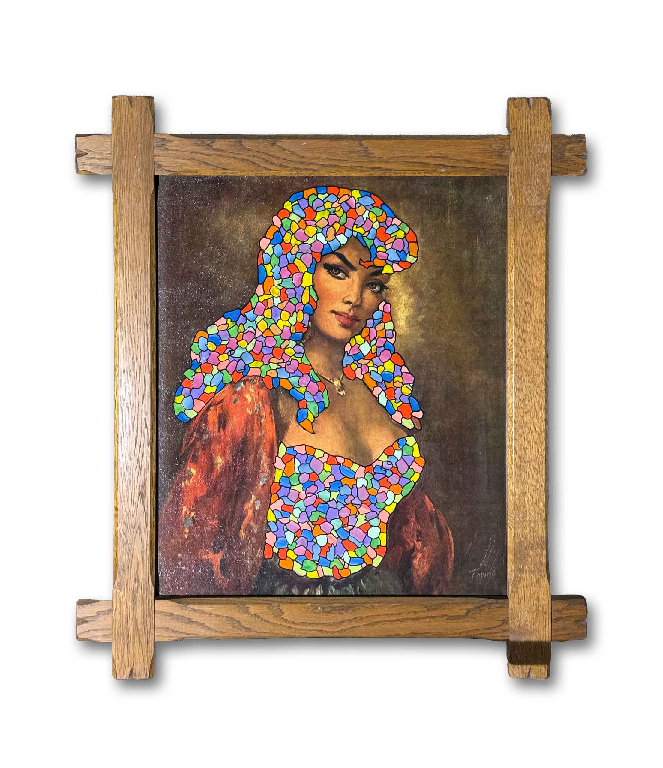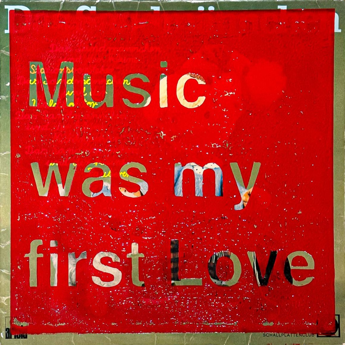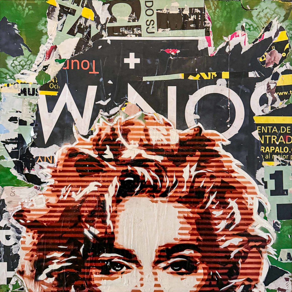 Acryl und Affichen auf Holz 50 x 50 cm