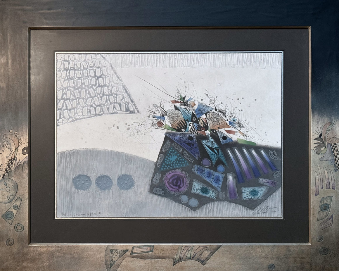 Lithografie auf Arches Bütten, 70 x 100 cm, Unikatrahmung
