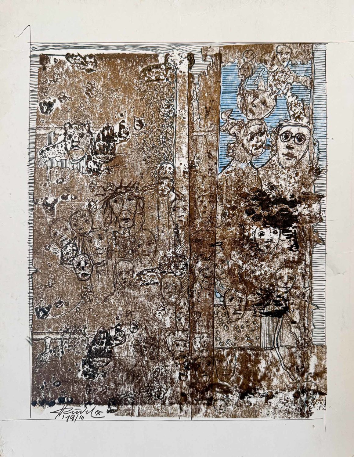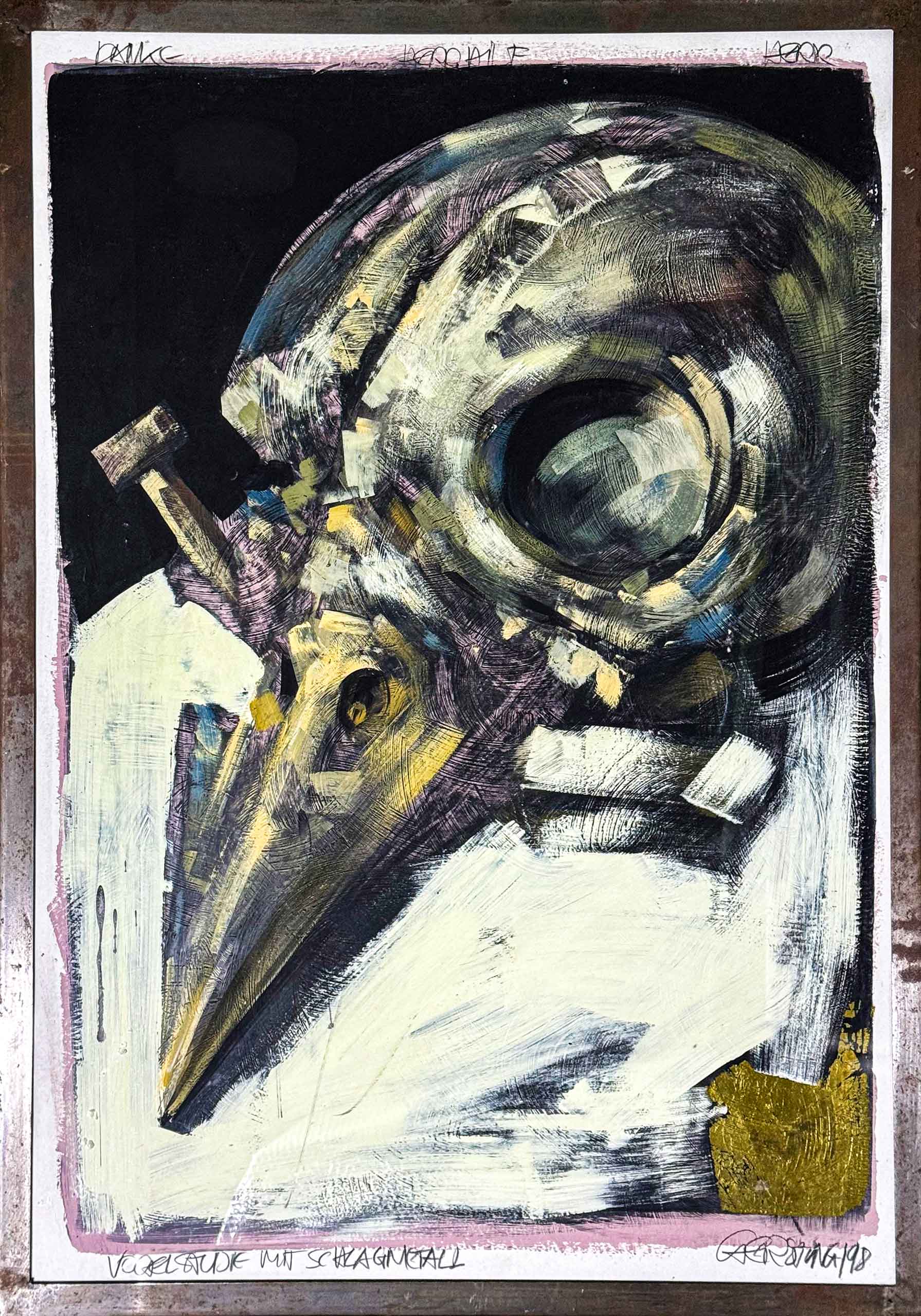 Tempera auf Papier roher Eisenrahmen 60 x 90 cm