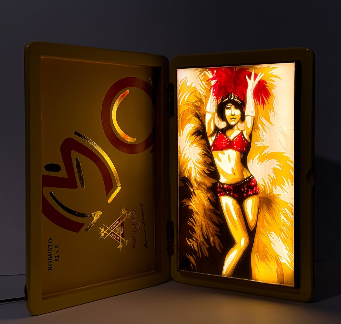 Klebeband auf Acryl In Zigarrenkiste, hinterleuchtet 30 x 60 x 5 cm