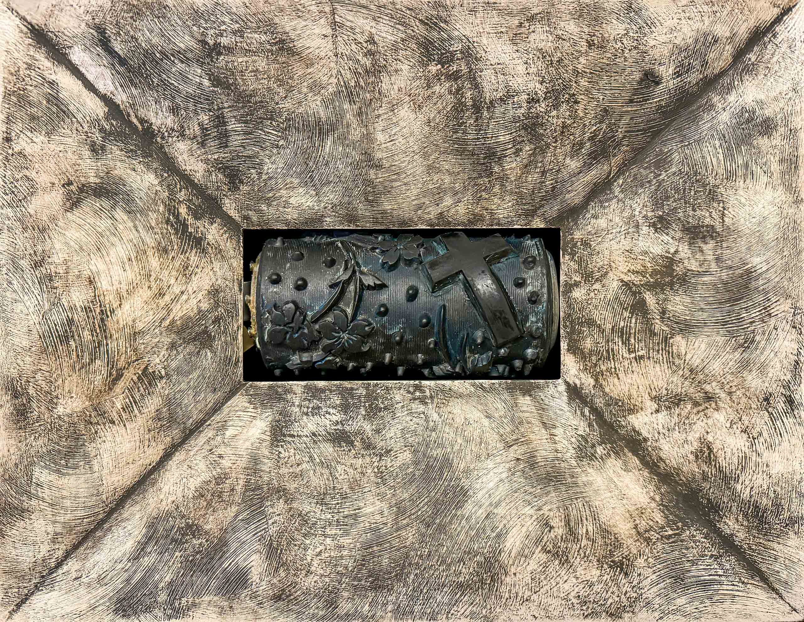 Walze, beweglich in Holzkasten, Acryl 30 x 40 x 10 cm