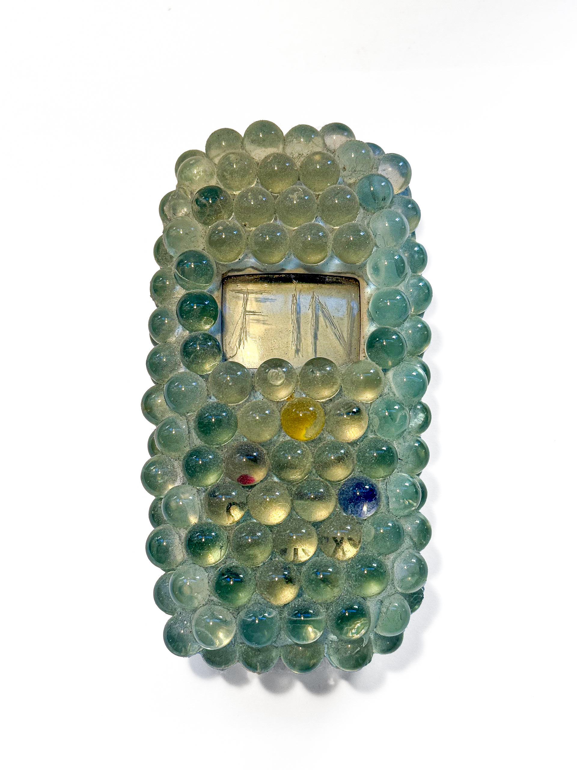 Glasperlen auf Mobiltelefon, 14 x 8 x 4 cm