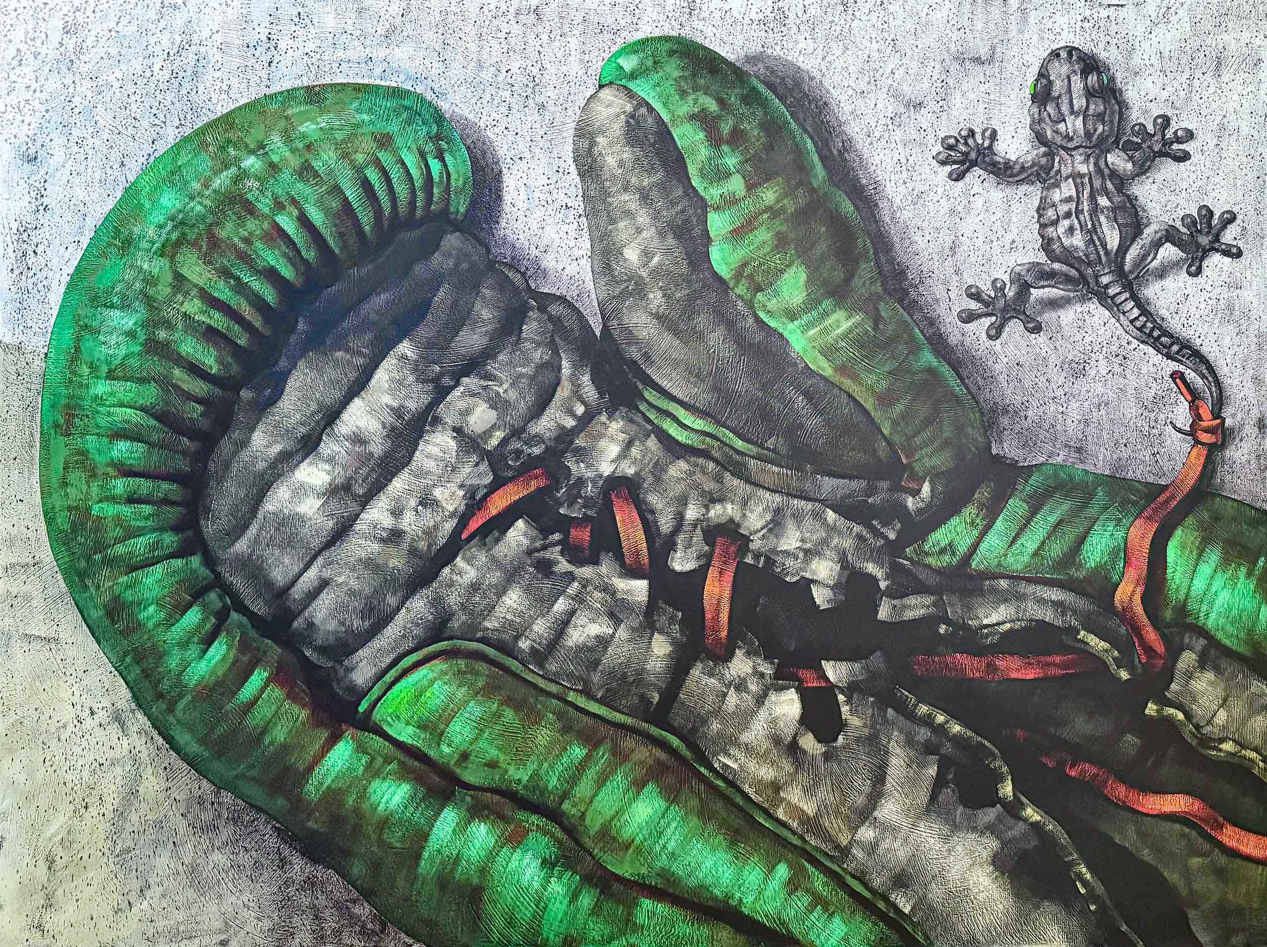 Tempera auf Feinpapier handgefertigter, roher Eisenrahmen 60 x 90 cm