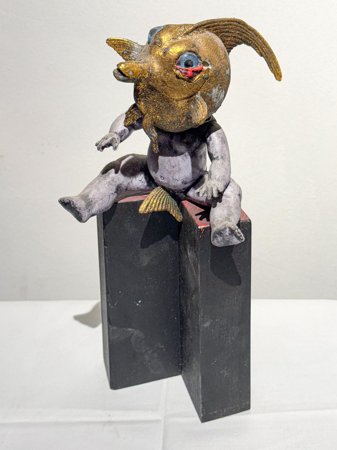 Plastik aus der Werkserie "Aufzug der Fischköpfe", 15 x 15 x 35 cm